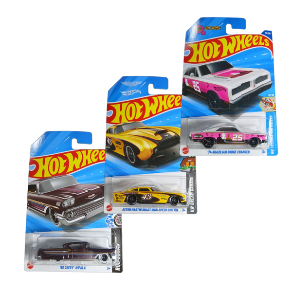 3 Hot Wheels Chevy Impala, Dodge Charger e Aston Martin DB4GT