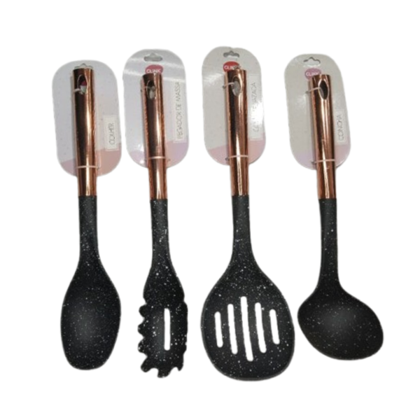 Um belo conjunto de talheres para sua casa com cabo aço inox rose.