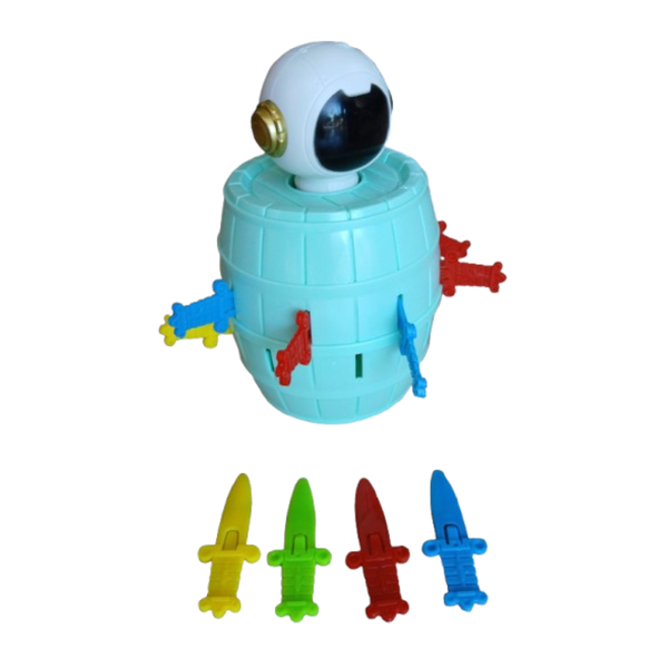 Cada um deve escolher uma cor de adaga e inserir em diferentes aberturas no barril.