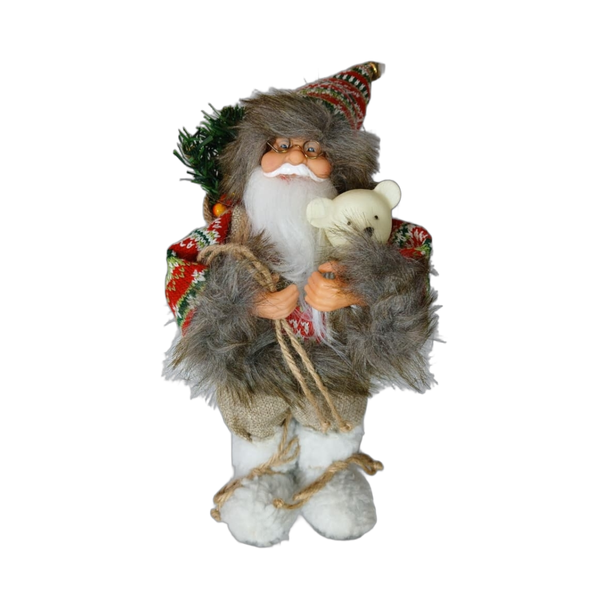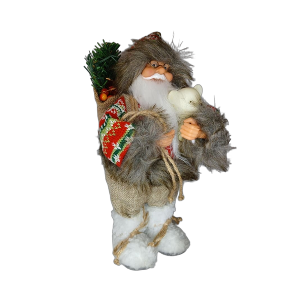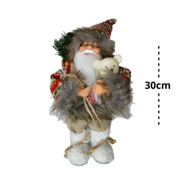 Enfeite Papai Noel C/ Urso e Saco 30cm