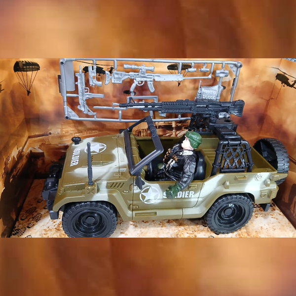 Jeep do Exercito com acessorios para brincar e se divertir.