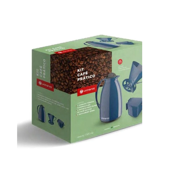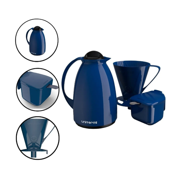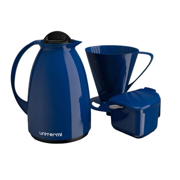 Kit Café Prático Azul Garrafa, Açucareiro e Suporte de Café