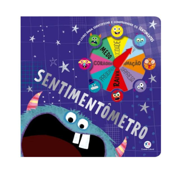 Identifique os sentimentos na roleta e reflita sobre suas emoções enquanto explora as páginas interativas deste livro incrível.