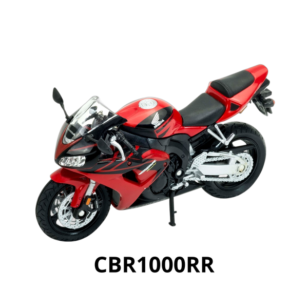 Miniatura de moto com escala 1:18, pneus de borracha com base.