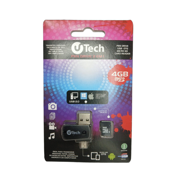 Pen Drive USB Micro SD 4G OTG 3 em 1