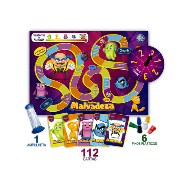 No tabuleiro cada casa possui a cor de um personagem, referente às cartas, a casa que o pino cair indicará a carta de qual personagem deve ser lida.