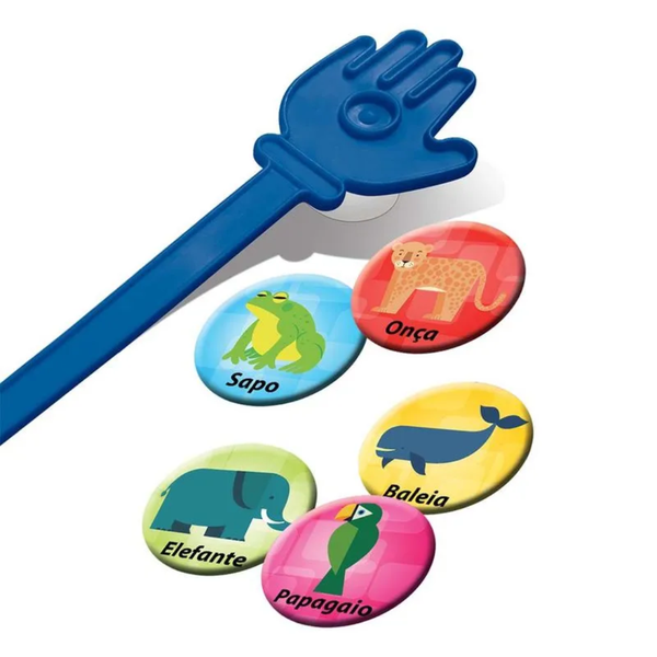 O clássico Tapa Certo com imagens de animais. Divirta-se pegando as imagens deles com as "mãozinhas" com ventosas!