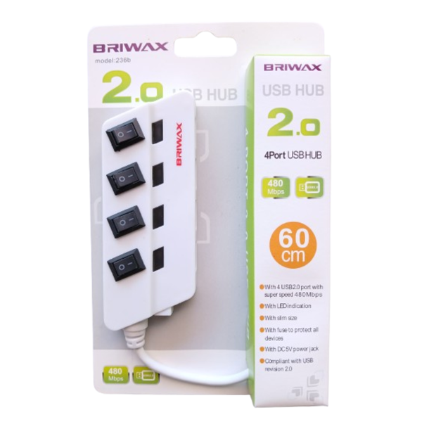 Tomada USB Com 4 entradas USB 2.0 e uma extenção de 60CM.